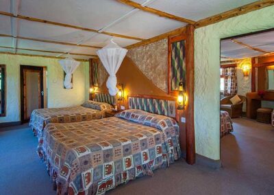 Set in 200 acres of private land, and with a rustic charm all of its own, the lodge nestles in the foothills of Mount Kilimanjaro which, at almost six thousand metres, is Africa’s highest and most famous snowcapped mountain. It was this region of Kenya that, in the 1930’s, inspired Ernest Hemingway’s unforgettable stories ‘The Snows of Kilimanjaro’ and ‘The Short, Happy Life of Francis Macomber’ which were turned into more than successful feature films in the late 1940’s due to their renowned actors. All forms of wildlife still abound in this wilderness which continues all the way to the Amboseli National Park, an easy twenty minute drive away from the lodge.