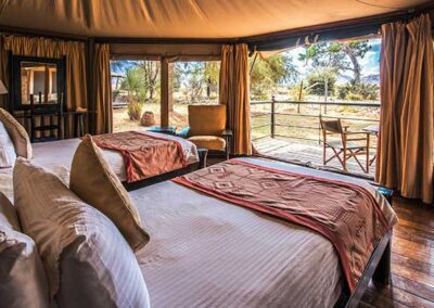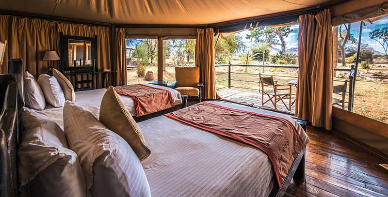 Ashnil Samburu Camp is a luxury tented set in the spectacular backdrop drop of the Mighty Ol Olokwe mountain fronting Ewaso Nyiro River in Buffalo Springs Game Reserve. The 30 exclusive luxury Tents are spread out along the shady banks of the river under a thick stand of doum Palms.