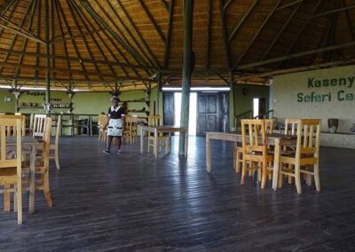Kasenyi Safari Camp is strategically located on the rim of lake Bunyampaka in the Kasenyi savannah of Queen Elizabeth National Park. The camp has an elevated dining structure that is meticulously thatched. The tents are on platforms with a thatched canopy roof. There are eight tents all with en-suite bathrooms, spacious living areas and private decks. Many animals frequent the camp during day & at night. Lion prides,hippo, leopard, buffalo, elephant, waterbuck, kob, hyena and wart hog are frequently seen. The night comes alive with sounds of hyenas howling and lions roaring.