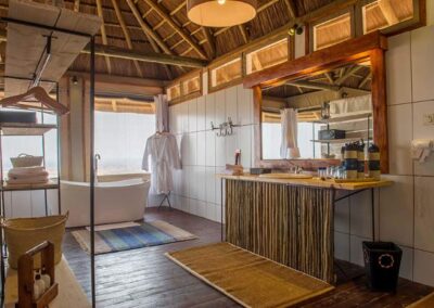 Elegant tents built on raised wood platforms with an en-suite facilities and an outside shower. After a day on safari guests can enjoy a refreshing shower under the stars. Each tent has its own private terrace from where to enjoy the landscape and the environment. The family tent consists in two tents interconnected and a shared bathroom and private porch.