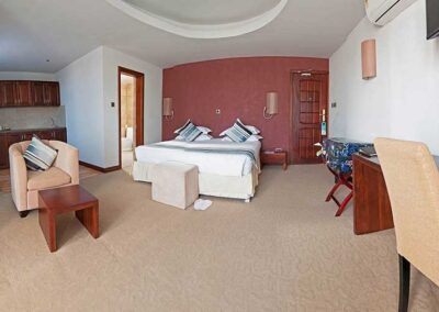 Lake Heights Entebbe, by BON Hotels, is located close to Entebbe International airport, and the city centre, and provides a convenient option for the bustling leisure market, international visitors on their way to Uganda’s spectacular national parks, and the corporate traveller en route to Kampala. Our boutique-style hotel boasts 33 beautifully designed rooms overlooking Lake Victoria, all with signature comfortable beds, generous work spaces, natural lighting and high-speed complimentary Wi-Fi. Guests will enjoy a warm welcome to our hotel whose facilities include a wellness centre, swimming pool, spa and gymnasium – take an hour before your day starts and enjoy a good workout or treat yourself to a pampering. Our full in-house restaurant and bar overlooking the lake, offer delicious light meals, dinner, lunch and breakfast – order your favourite cocktail as the sun sets over the lake. Our purpose-built conference venue can seat up to 30 delegates, and makes for an ideal space for a workshops, meetings and cocktail functions. The hotels great location makes for excellent sightseeing and things to do in the area.