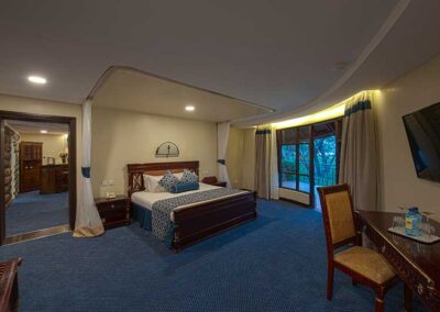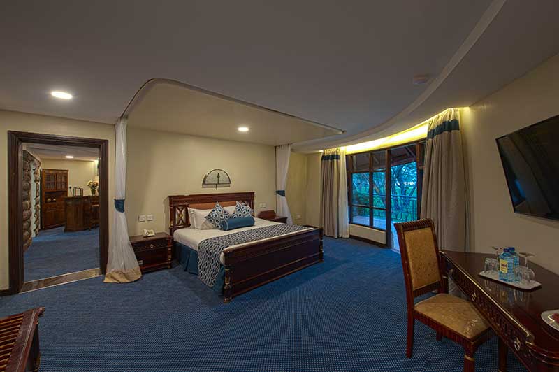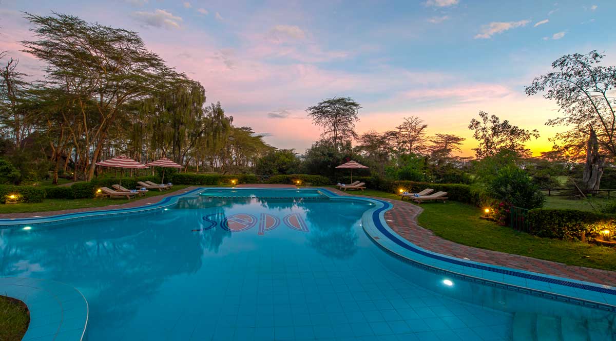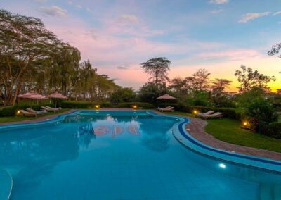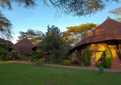 Set in one hundred and fifty acres of grassland studded with Acacia bushes and trees, the resort is not only home to our resident giraffe, waterbuck and both Vervet and Colobus monkeys, but it is also a night stop for the hippos when they leave the lake every night to come and trim the grass on our expansive lawns.