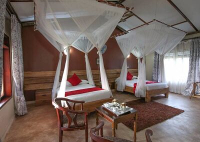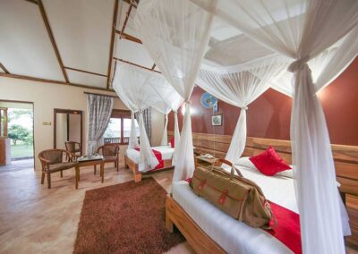 We pride ourselves in our flair, style and creativity and place special emphasis on our guest’s comfort. Our 46 spacious rooms are built on an elevated ground, with a balcony and sliding large windows to provide superb views of the river. All our guest rooms are en-suite bathrooms with running cold and hot water as well as a flush toilet. Beds are king size and fine linen has been carefully selected to ensure total comfort. Our aim is to provide our guests with the pleasure of being pampered in a home environment.