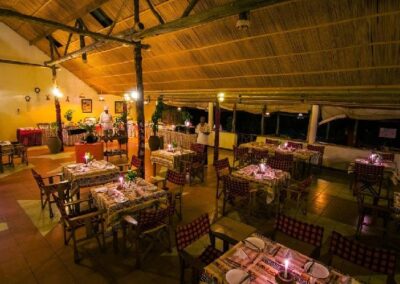 Meals are served at the the main restaurant. The bar has a fine selection of wines and cocktails. On selected days, the lodge offers evening entertainment.