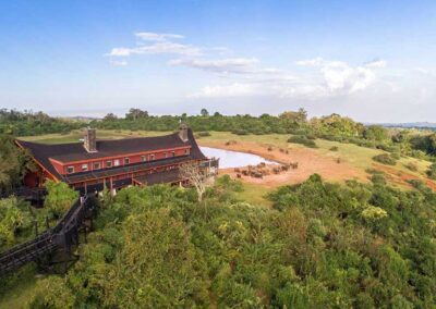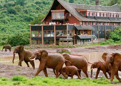 Set in the heart of the Aberdare National Park, iconic and yes, quirky, The Ark overlooks a floodlit waterhole and salt lick, which attracts a host of awesome wildlife. Resembling and named after Noah’s Ark, The Ark comprises of three decks from which numerous balconies and lounges provide a superb location for wildlife to be seen. The Ark has four viewing areas for observing the ever-present animal activity. There is also a ground level bunker – the perfect hideout for the discerning photographer. This is a circular pillbox-like structure, and it is from this vantage point that pictures of animals on the salt lick only yards away may be taken through the view holes in complete safety. As Monty Brown describes in his book, “Haven Under the Hill”:
